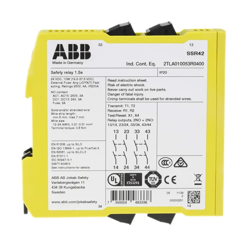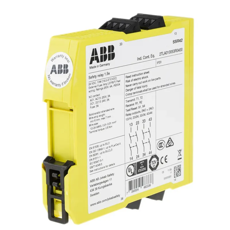 SSR42 - Rơ Le An Toàn ABB Sentry 2TLA010053R0400 (2NO Ondelay +2NO, 24VDC, 1 kênh; 2 kênh; OSSD) |