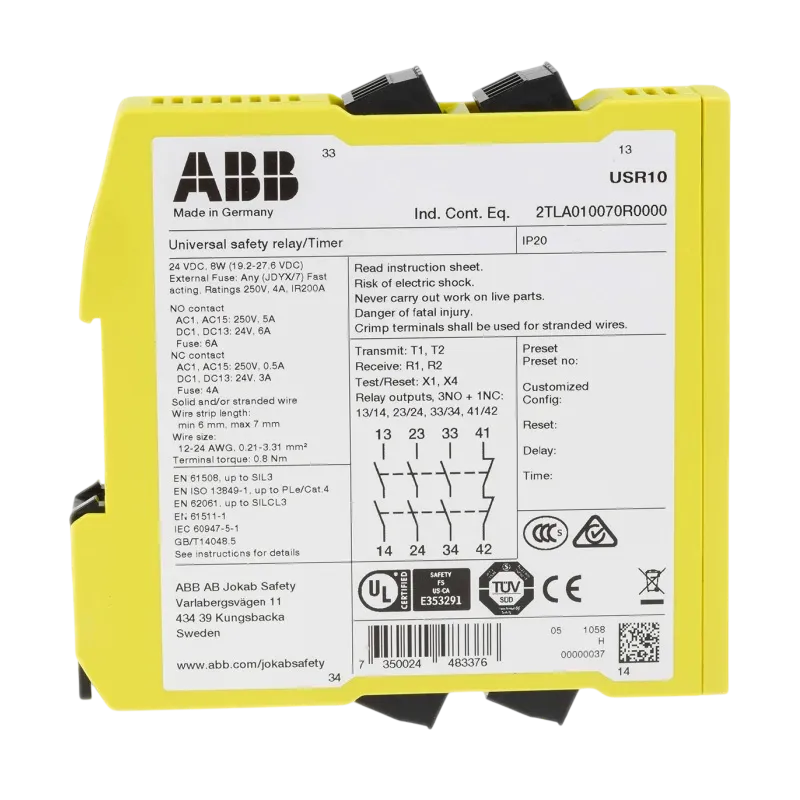 USR10 - Rơ Le An Toàn ABB Sentry 2TLA010070R0000 (3NO + 1NC, 24VDC, 1 kênh; 2 kênh; OSSD)) |
