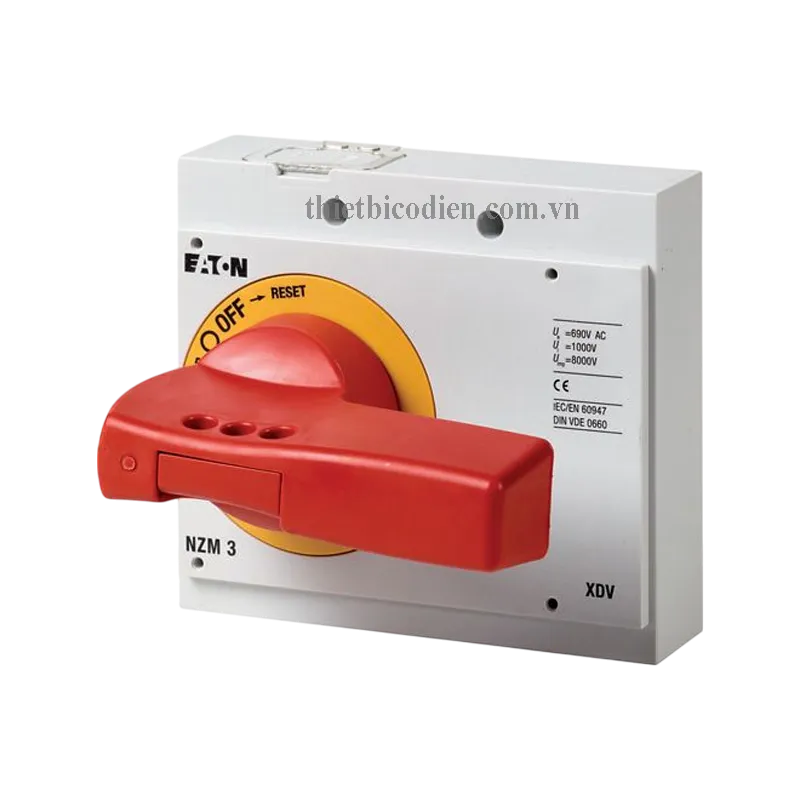Máy cắt mạch vỏ đúc Eaton Moeller dòng NZM. Tay quay, màu đỏ-vàng, có khóa, cỡ 3