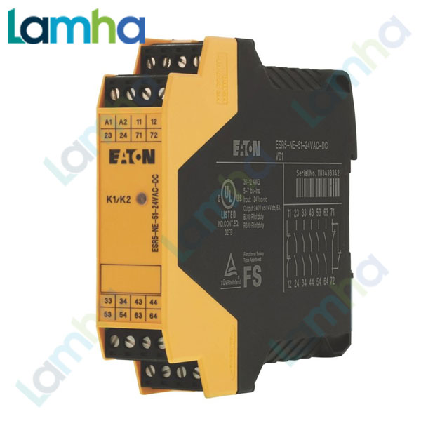 Rơ le an toàn ESR5-NE-51-24VAC-DC từ Eaton cho phép bạn giám sát các mạch dừng khẩn cấp một cách an toàn và hiệu quả. Ngay khi nút DỪNG KHẨN CẤP được nhấn, nhiều đường dẫn kích hoạt sẽ được thiết lập để ngắt nguồn điện ngay lập tức hoặc theo thời gian trễ, tùy thuộc vào cấu hình. Điều này cực kỳ quan trọng trong việc phát hiện lỗi như đoản mạch, ngắn mạch hay hở mạch. Sau khi loại bỏ các nguy cơ/lỗi, rơ le sẽ tự động xác nhận lại và kích hoạt đường dẫn.
