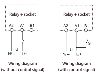 | Mã hàng | Điện áp danh định (VAC) | Dải hoạt động VAC | Dải hoạt động VDC | Cài đặt độ trễ | Chức năng | Kích thước |