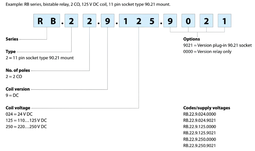 | RB22.9.125.9021 | 125 | 4W | 88...137.5 V | 2CO | 8A | 250 V AC | 100000 cycles | 4kV | -40...55 °C | 38x79x81 mm |