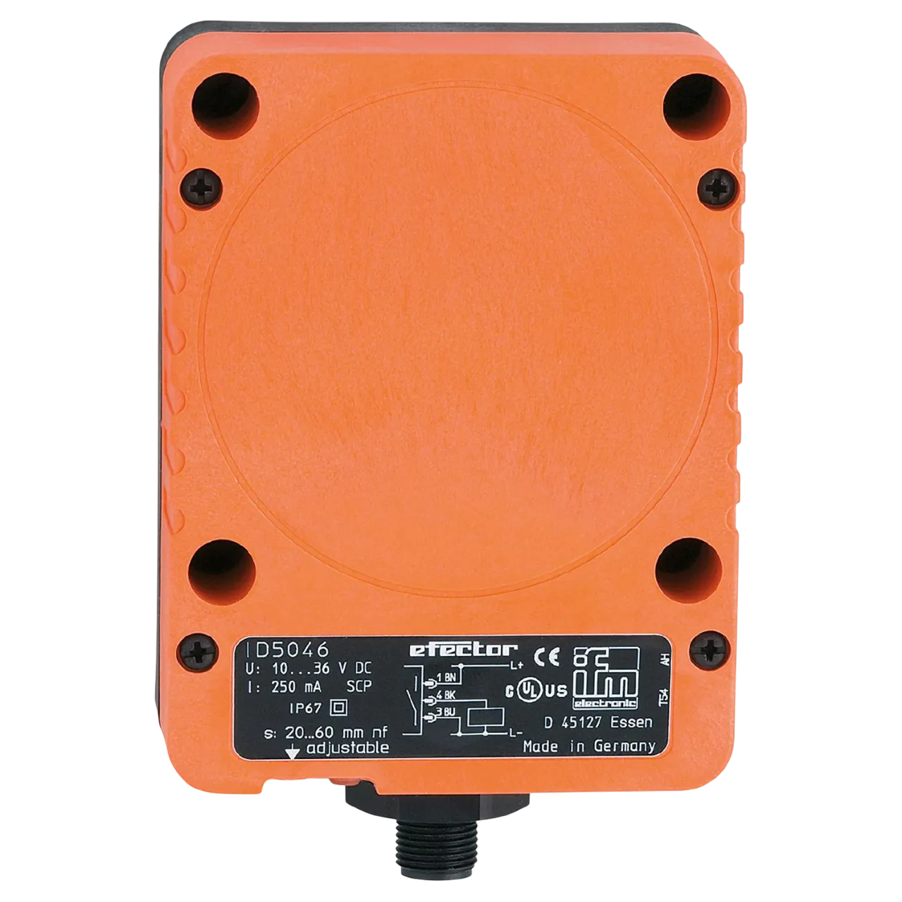 | ID5046 | 105x80x40 | 60 mm nonflush | 3 | PNP, NO | 10...36 | 100 | 250 | M12 Micro DC |