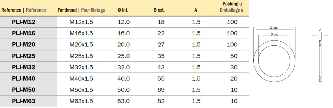 | PLJ-M20 | M20x1.5 | 20 | 27 | 1.5 | 100 | |