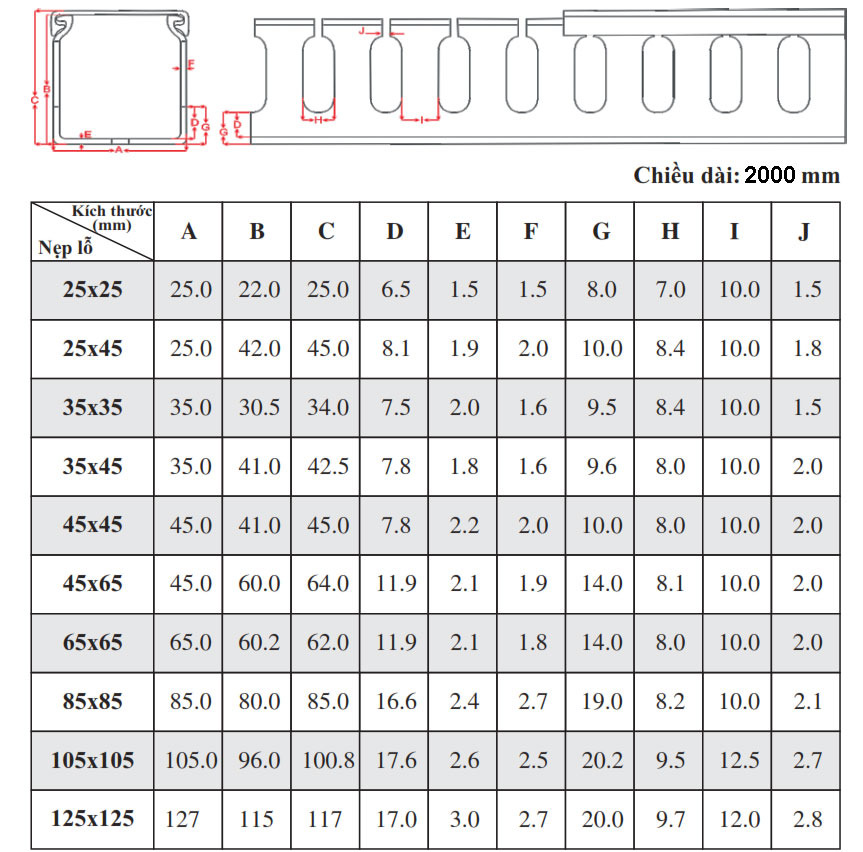 | MÃ HÀNG | KÍCH THƯỚC (MM) | ĐỘ DÀY (Nắp - Đế) | CHIỀU DÀI | MÀU SẮC | ĐÓNG GÓI (Cây/thùng) |