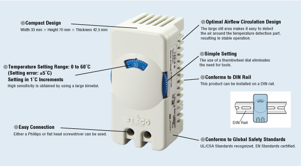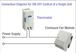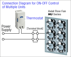 Điều khiển BẬT-TẮT cho nhiều quạt làm mát Ví dụ, Quạt hướng trục AC dòng MU có thể điều khiển tối đa 9 quạt cùng lúc. Khi lưu lượng gió của một quạt không đủ, nhiều quạt có thể được điều khiển bằng một bộ điều nhiệt duy nhất. |
